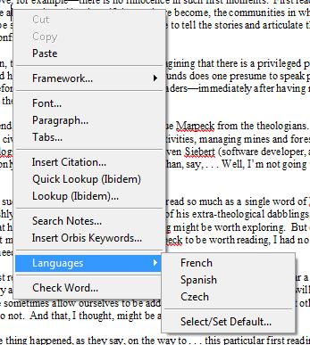 Marking text as being in a particular language (even if you enter that text using the same keyboard layout as you use for your primary language) is essential if you want to enable Nota Bene’s automatic language-switching, either during dynamic on-screen spelling, or when using the traditional file/block spelling. These enhanced features make this process much easier.