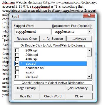 Two new supplemental dictionaries are supplied (both extend the English dictionary):